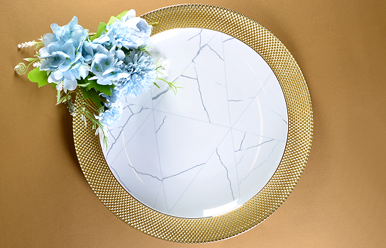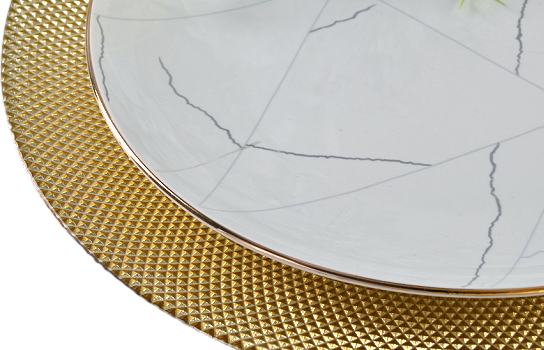 Elevate your event with the Service Plate Diamond Rib Gold, ideal for weddings, formal dinners, and upscale gatherings. This exquisite plate features a stunning diamond rib design in a luxurious gold finish, adding a touch of elegance and sophistication to your table decor.