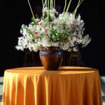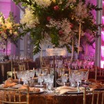 France the capital of good taste and luxurious living. In a present environment the party planner combined the long abandoned and long forgotten “Château French Dining”. Elegant damask tablecloths, crystal cut wine glasses and Pineapple center pieces topped with foliage and flowers.