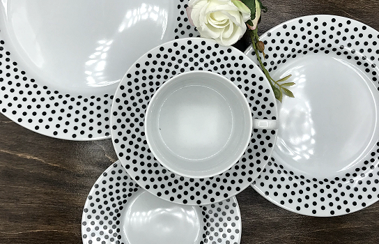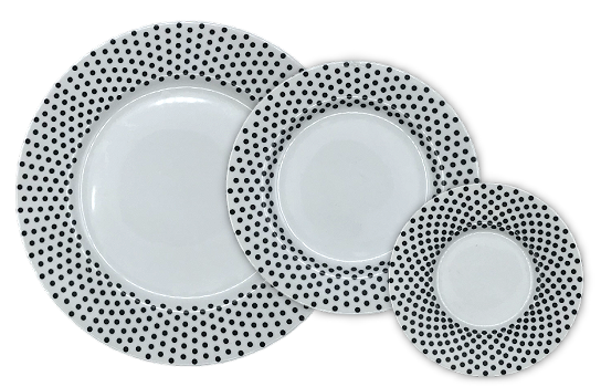 The Black Dots Dinner Plate features a sleek design with elegant black dots, perfect for adding a touch of sophistication to your dining table. Ideal for any occasion.