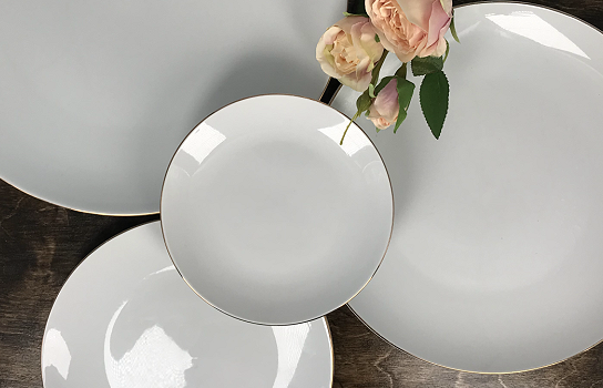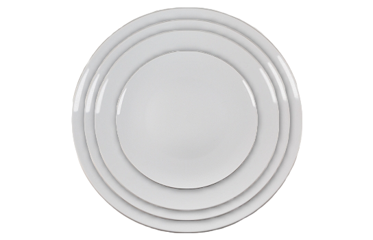 The Entree Plate Modern White Gold Rim adds sophistication to your event's dining experience. Its clean white surface paired with a gold rim is perfect for serving main courses at weddings, corporate functions, and upscale parties.