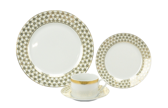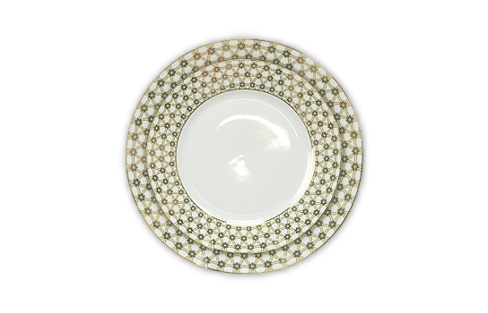 The Star Gold Salad Plate, 8", showcases a radiant gold design, adding a luxurious touch to your table settings. Perfect for upscale events, weddings, and special occasions where elegance is key.
