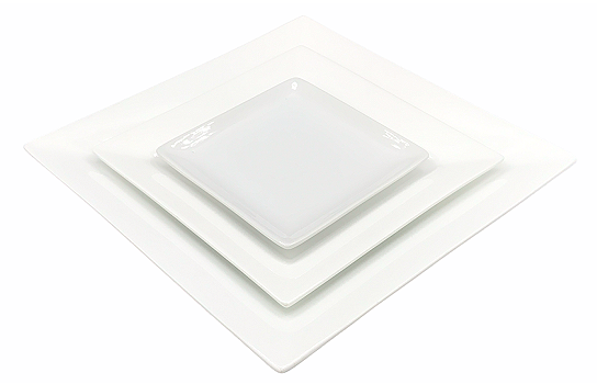 The Square White Forum Salad Plate, 7 inches in size, features a contemporary design that enhances the presentation of salads and side dishes with its elegant and minimalist style.