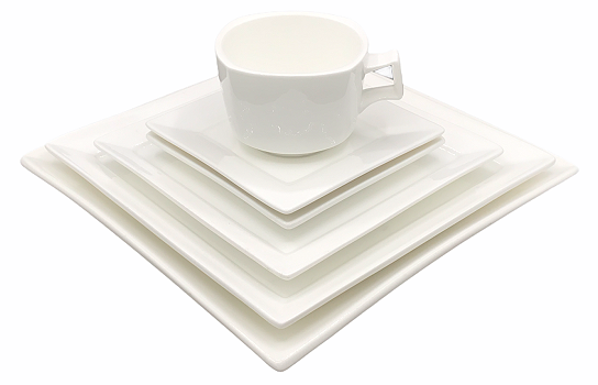 The Square White Kimo Dinner Plate 10" features a clean, modern square design in crisp white, perfect for presenting a variety of dishes with elegance and style at any dining occasion.