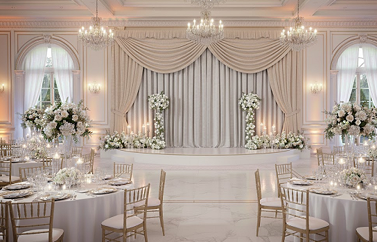 Elevate your event with our velvet light silver draping. Its sleek, metallic hue and soft texture add a sophisticated and modern touch, ideal for weddings, corporate events, or elegant parties.