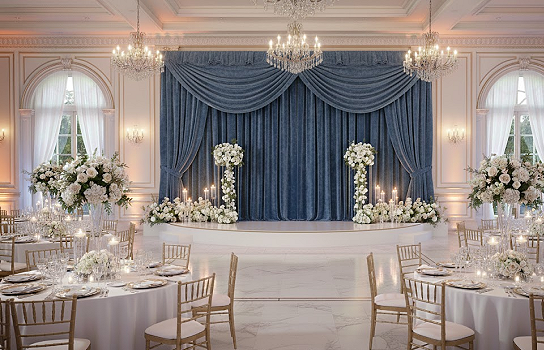 Transform your venue with our velvet perry blue draping. Featuring a rich, luxurious texture and a stunning blue tone, it’s perfect for backdrops, ceiling treatments, or wall coverings, adding elegance to weddings, galas, or corporate events.