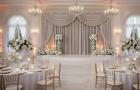 Enhance your event décor with our velvet taupe draping. Luxuriously soft with a rich taupe hue, it’s ideal for creating elegant backdrops, wall coverings, or ceiling treatments for weddings, galas, and sophisticated events.