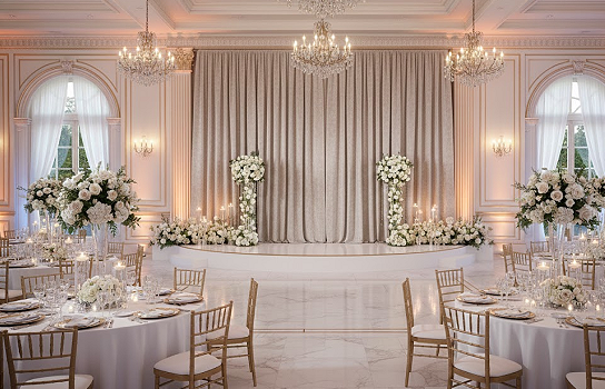 Enhance your event’s ambiance with our velvet blush pink draping. Its soft, luxurious texture and delicate pink hue make it perfect for romantic weddings, baby showers, or galas, creating a warm and inviting atmosphere.