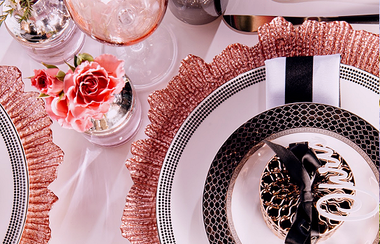 Add a charming touch to your table with the Tiffany Pink Leaf Glass Service Plate. Ideal for weddings and special events, this beautiful charger plate features a delicate pink leaf design, creating an elegant backdrop that highlights your culinary creations and enhances your table decor.