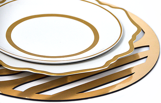 Make a statement at your event with the Gold & Black Reversible Service Plate. This 13" plate offers a luxurious design with dual color options, perfect for adding elegance and versatility to your table setting.