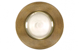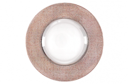 Add a luxurious touch to your event with the 13" Rose Gold Glass Service Plate. This elegant plate features a stunning rose gold finish, perfect for creating a sophisticated and stylish table setting.