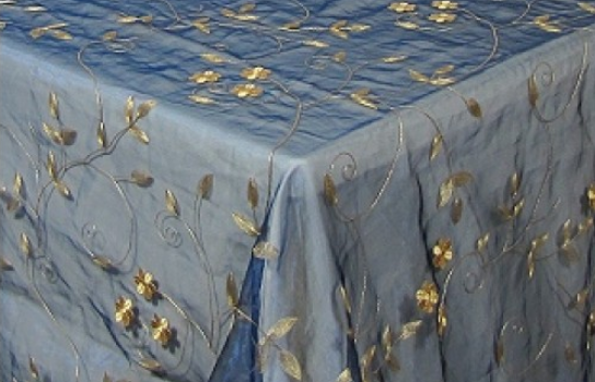 Tablecloth Blue and Gold Embroided Organza 112" Square..