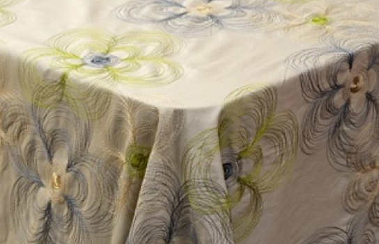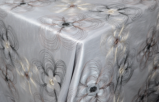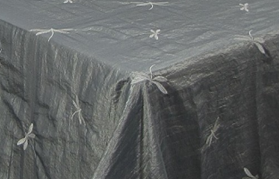 Tablecloth Shantung Silver Embroidered Floral 122" Square