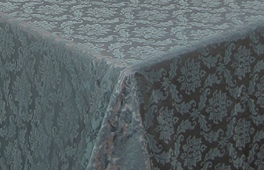 Tablecloth Silver and Blue Flocked 122" x 122" Square
