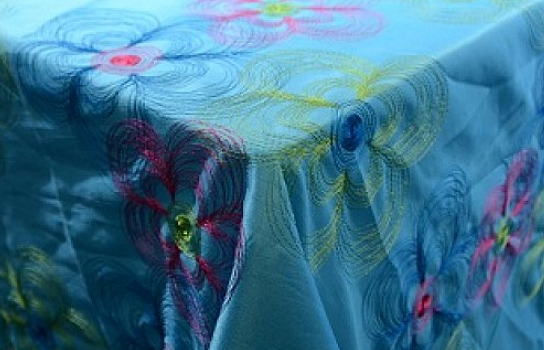 Tablecloth Shantung Aqua Embroidered Floral 122" Square