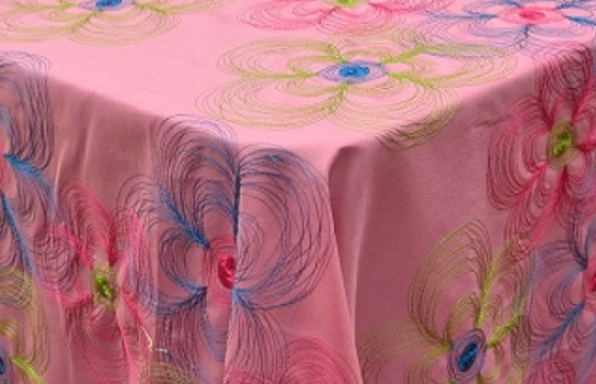 Tablecloth Shantung Pink Embroidered Floral 122" Square