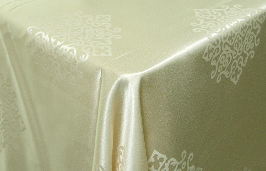 Tablecloth Shantung Champagne Embroidered Floral 122" Square