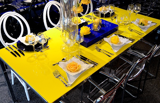 The Soho Acrylic Table Top in Yellow 72" x 34" offers a striking splash of color and contemporary flair. Its vibrant red finish provides a bold contrast, enhancing any modern dining setting with its sleek, durable design.