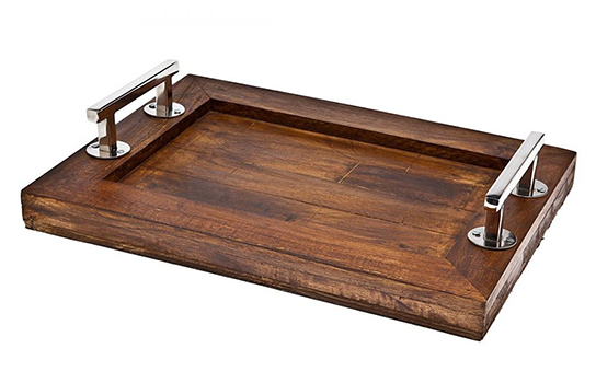Rectangular Wooden Tray with Chrome Handles 16" x 12"