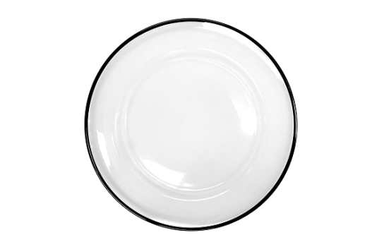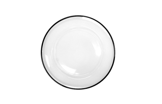 Service Plate Modern Glass Black Rim 13"The Modern Glass Service Plate with Black Rim offers a sleek..
