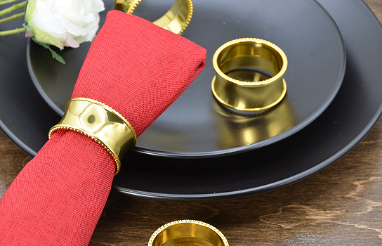 Add a sophisticated touch to your event with our classic gold napkin rings. Perfect for weddings, parties, and special occasions, these rentals elevate your table setting with timeless elegance.