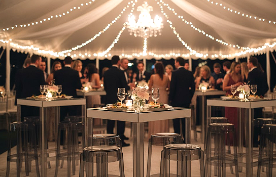Elevate your event with the Bar Stool Ghost Smoke, a sleek and modern seating option. Perfect for stylish bars, weddings, and cocktail parties. This transparent design adds sophistication to any setting.