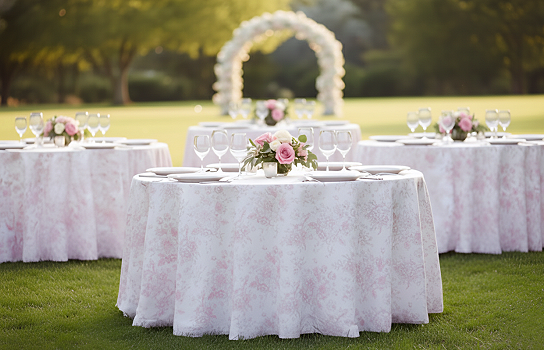 Bring a romantic and refined touch to your event with our Toile Pink 120" Round Tablecloth. The delicate toile pattern and soft pink hue create an atmosphere of elegance and charm, perfect for weddings, bridal showers, and sophisticated receptions.